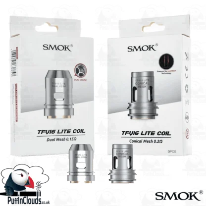 The SMOK TFV16 Lite replacement vape coils have been designed for use with the SMOK TFV16 Lite vape tank only. There are two versions of this coil available; a 0.20 Ohm conical mesh coil as well as a 0.15 Ohm dual mesh variant.